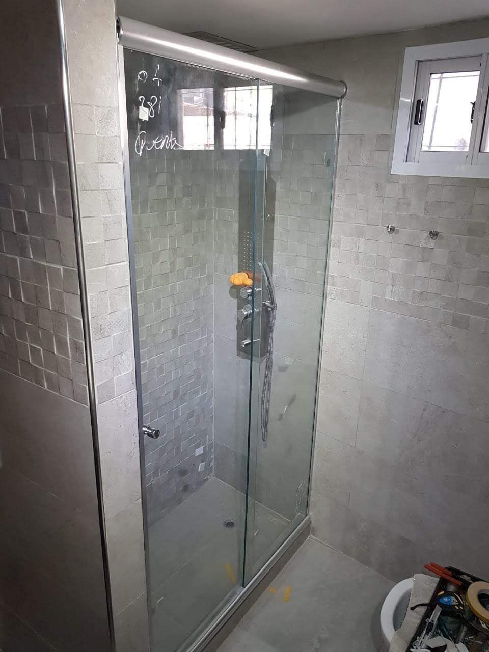 En Vidriería Rosario ofrecemos gran variedad de mamparas para baño, fabricadas a medida con perfiles de aluminio anodizado gris natural y pintado de color blanco al horno con cristales de 8 mm en incoloro, marrón oscuro, gris y satinado blanco, en las siguientes variedades: